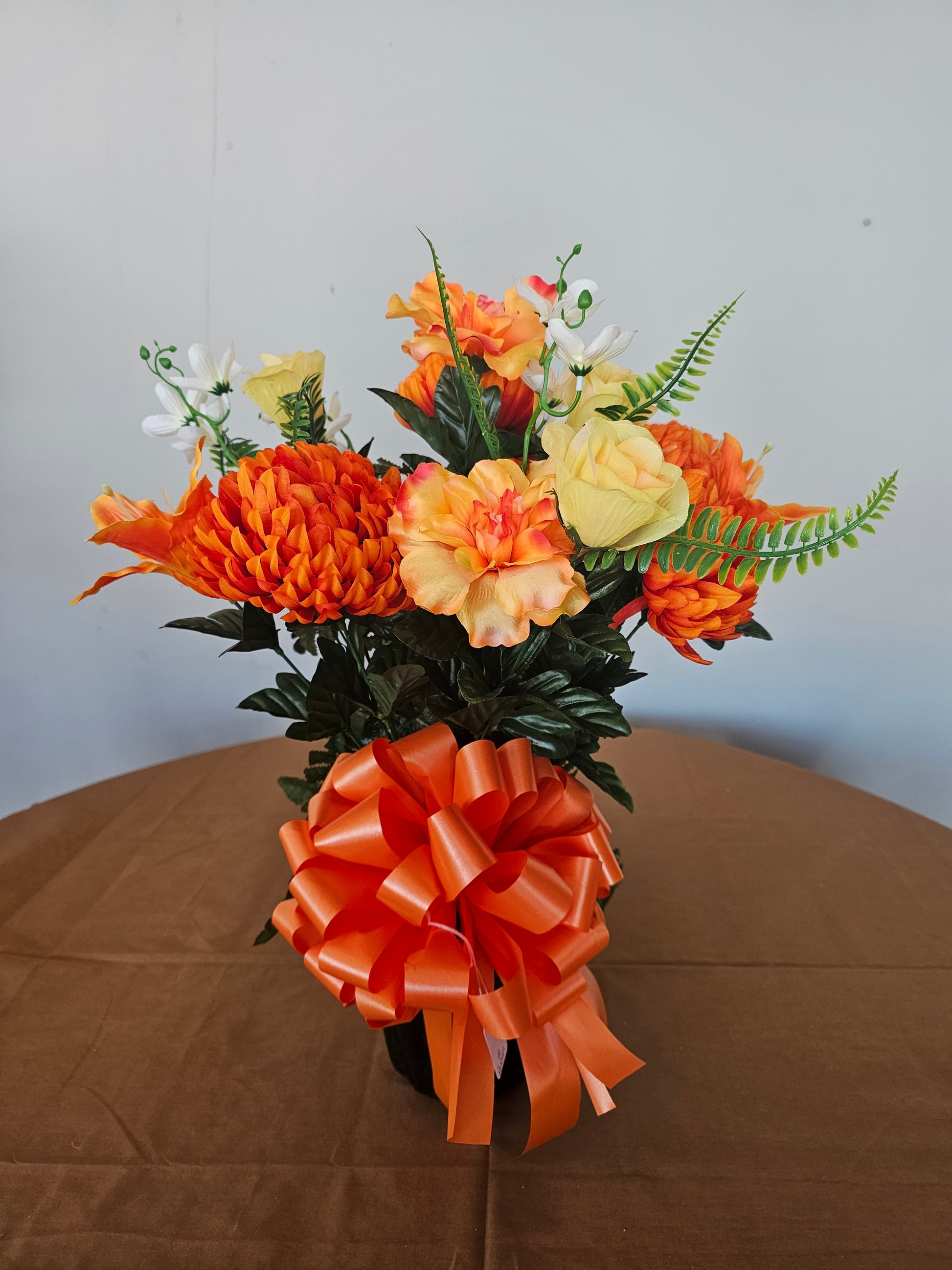 Handcrafted with love and prayer, this autumn floral tribute is more than just a bouquet — it’s a heartfelt gesture of remembrance, a whisper of grace, and a soft embrace of beauty in a changing season. Rich fall tones mingle with textures of gold, amber, russet, and earth, creating an arrangement that honors memory with dignity and invites comfort. May this floral gift be a quiet way to say, I remember. I love you. I still carry you with me, held in the warmth of God’s everlasting presence.