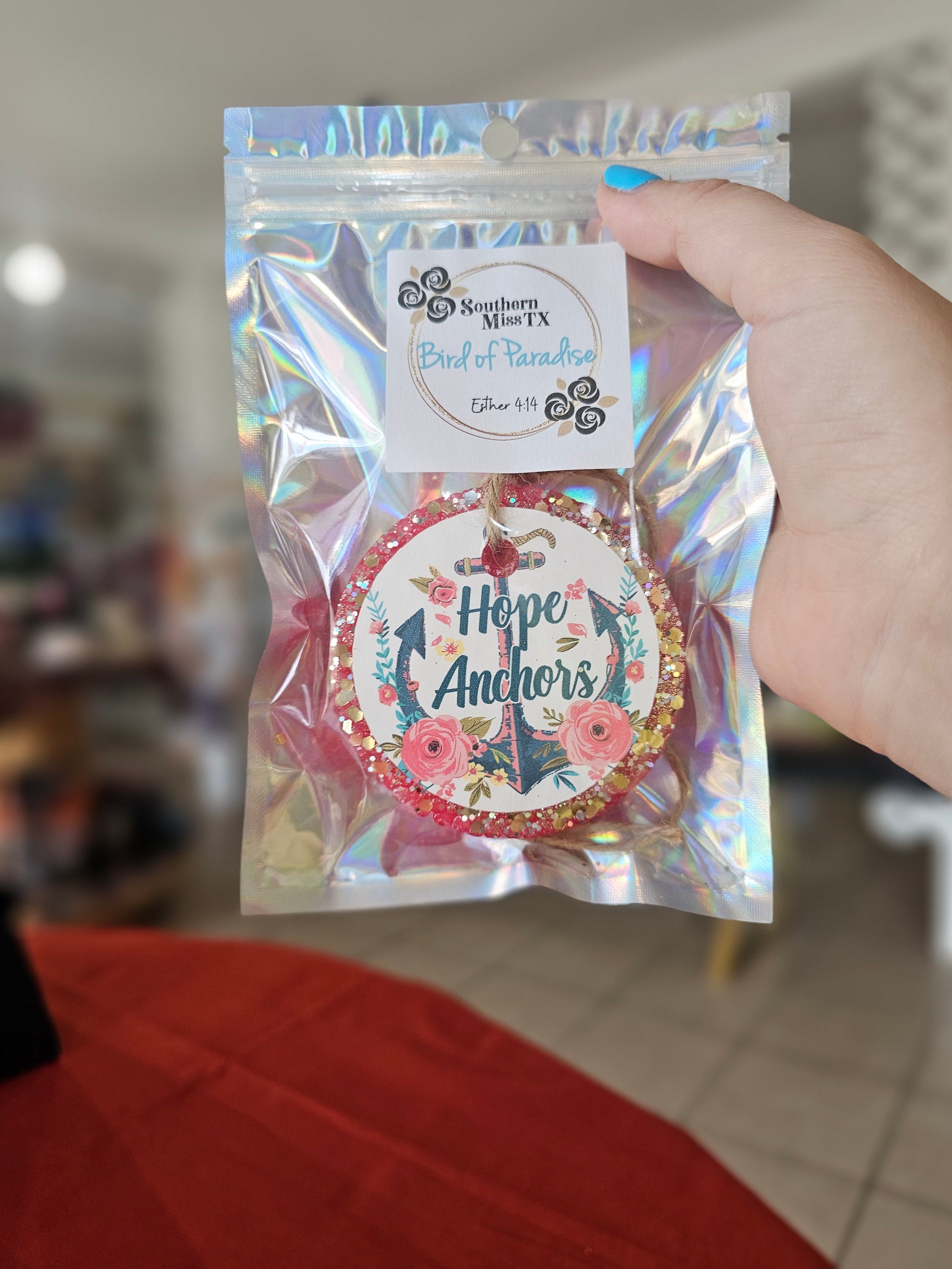 Add a little joy to your journey with our hand-poured car freshies! Each one is long-lasting, beautifully scented, and cute enough to hang anywhere — from your rearview mirror to your closet. Perfect for gifting or treating yourself to a fresh-smelling ride!