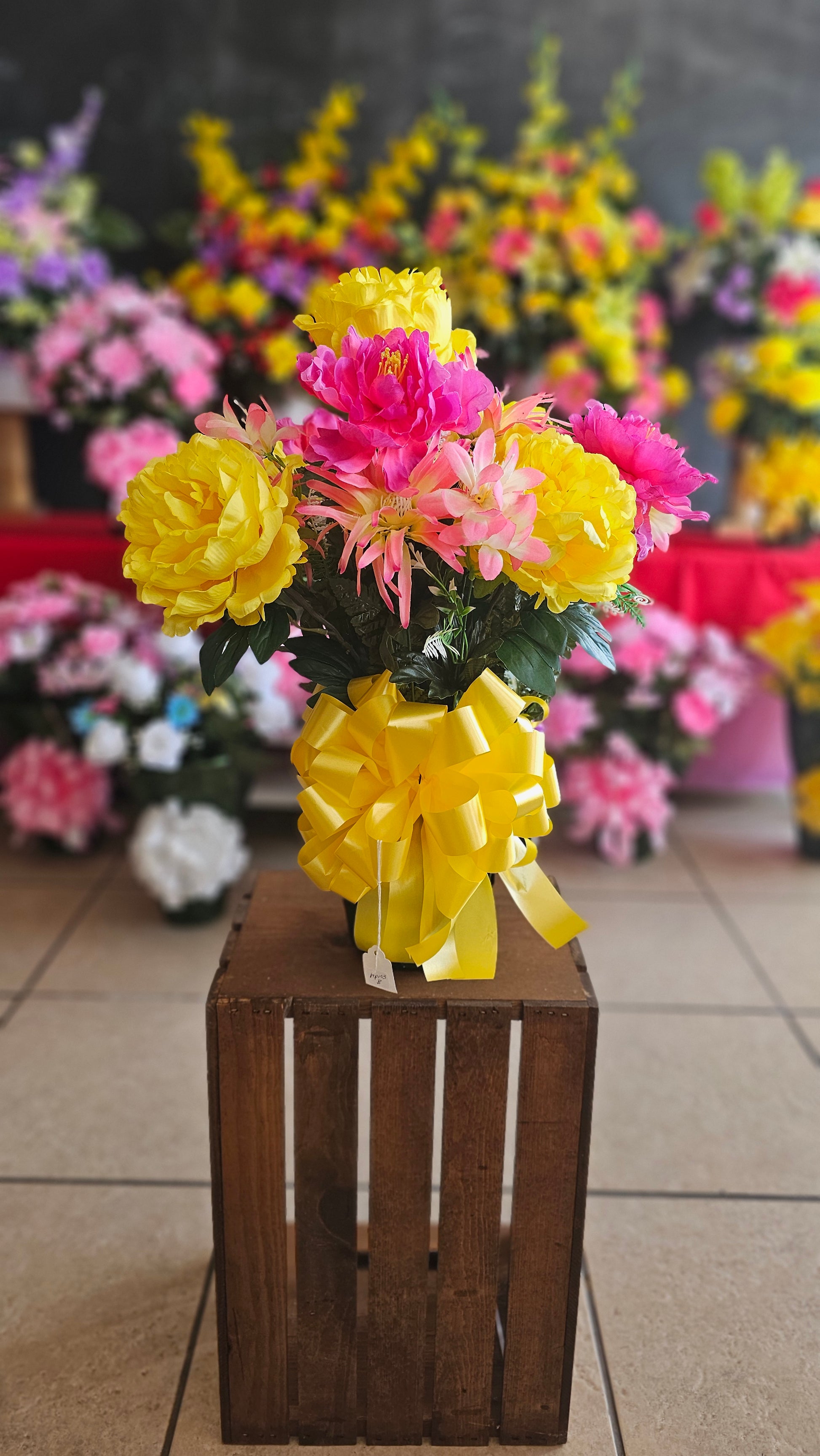 Full of bright yellow blooms and joyful pink petals, this radiant arrangement reminds us that even in seasons of sorrow, God’s mercies are new every single morning. It’s a sunshine-soaked tribute to the ones who lived with laughter, loved with all they had, and left behind a light that still shines.
