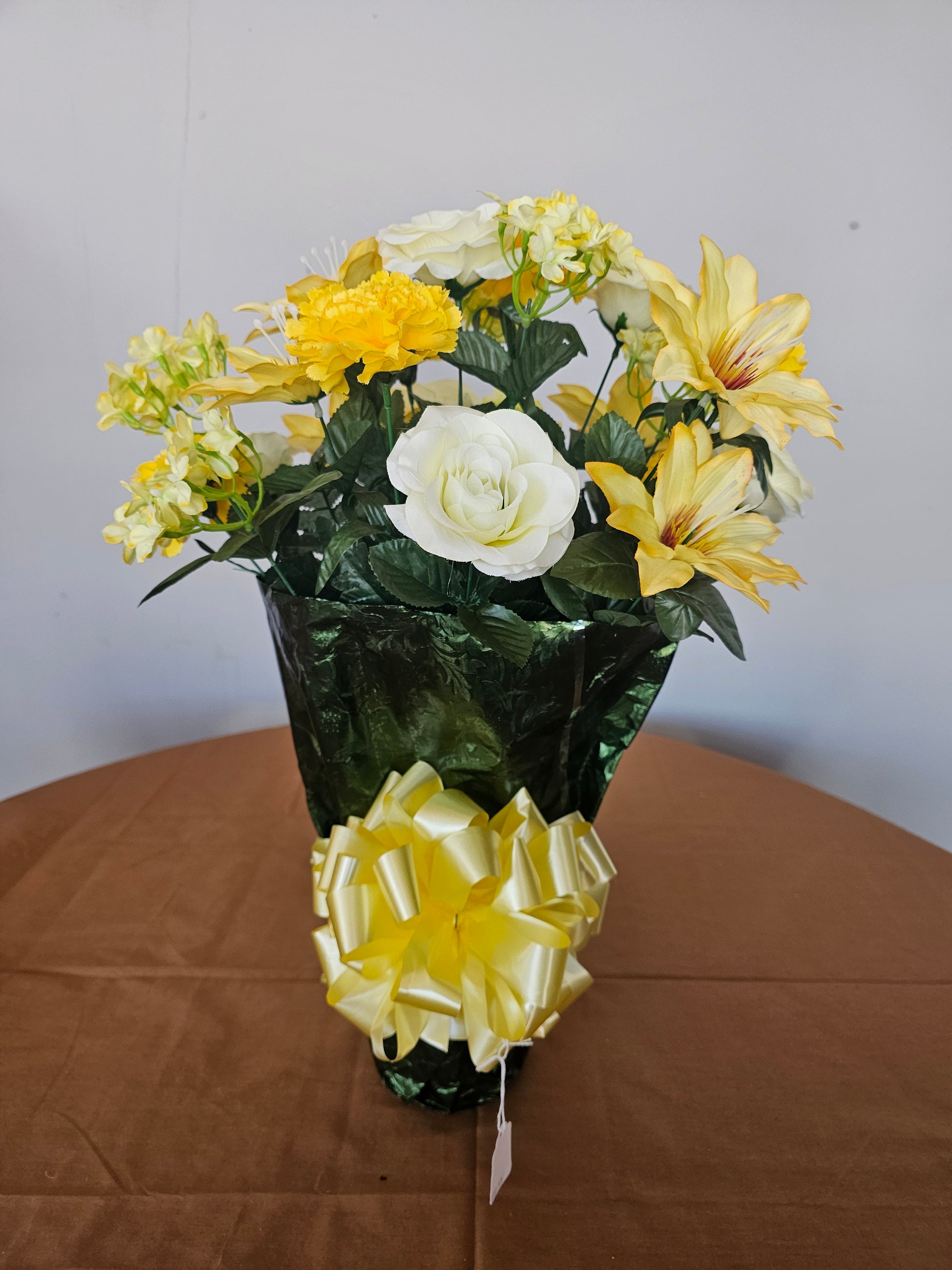 Please Note: All of our cemetery floral arrangements and wreaths are available for in-store pickup only. At this time, we do not offer shipping for these items, But we do offer local delivery and graveside service!